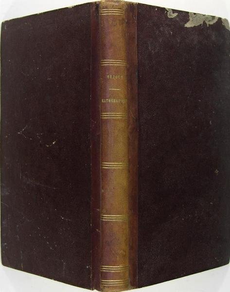 Avignon, Offray Aîné, imprimeur libraire, 1828. In/8, reliure demi-basane dos lisse à titre doré, 216 p. “Grignotage” sur le plat supérieur ; rares rousseurs éparses. Nommé par Étienne François de Choiseul en 1763 examinateur des gardes de la marine, il est chargé de la rédaction d'un cours de mathématiques qui conduira au Cours de mathématiques à l'usage des gardes du pavillon et de la marine. À la mort de Charles-Étienne Camus en 1768, il devient examinateur des élèves du corps de l'artillerie et rédige le Cours complet de mathématiques à l'usage de la marine et de l'artillerie, qui devint plus tard le livre de chevet des candidats au concours d'entrée à l'École polytechnique