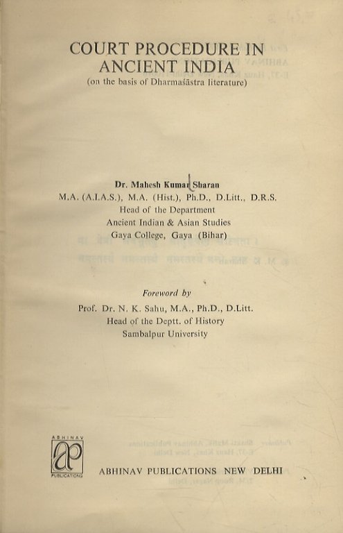 Court procedure in Ancient India. Foreword by Prof. Dr. N.K. Sahu.