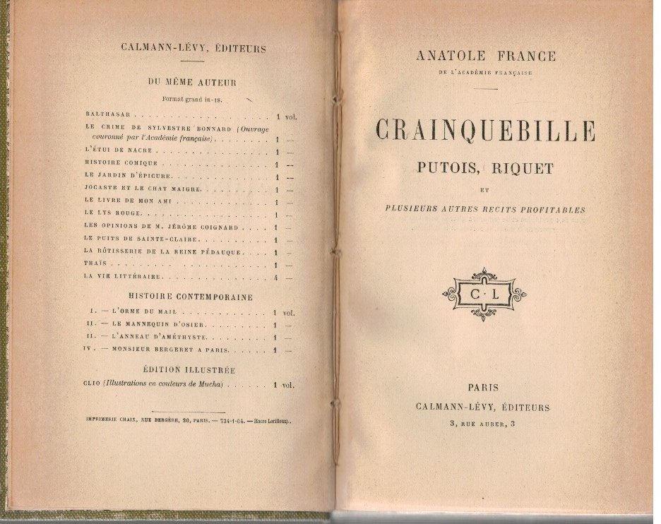 Crainquebille Putois, Riquet et plusieurs autres recits profitables