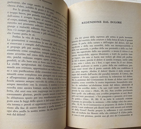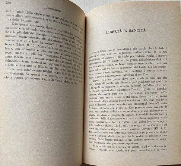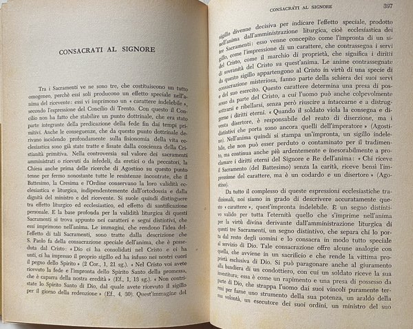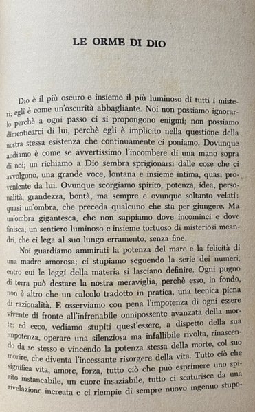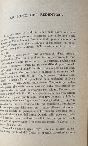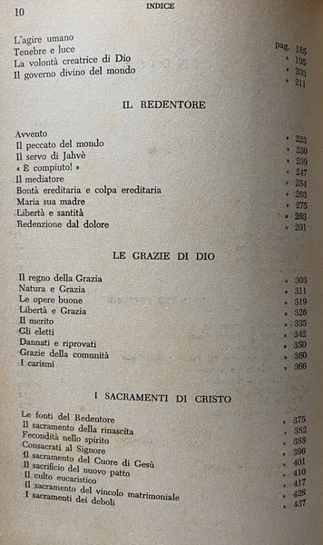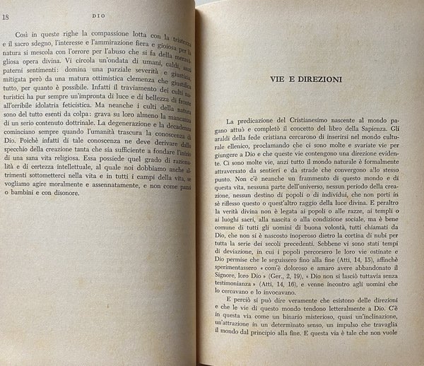 Soggetti: Religione, Teologia, Esistenza di Dio, Credere, Prova scientifica, Trinità, Creazione, Redenzione, Grazia, Sacramenti, Umanità, Salvezza, Mistero, Giobbe, Colloqui, Dieu, Trinité, Création, Gott, Wege und Führungen, Wissenschaftliche Beweise, Die Namen Gottes, Sacrificio, Eucaristia, Matrimonio, Battesimo, Cresima, Ordine, Rivelazione, Rinascita, Gloria, Estrema Unzione, Chiesa, Padri, Risurrezione, Morte, Pasqua, Libertà, Natura, Copa, Peccato, Bontà, Santità, Maria, Jahvè, Luce, Tenebre, Agire umano, Volontà creatrice, Eletti, Merito, Gesù Cristo, Padre, Figlio, Spirito Santo, Consacrazione, Corpo, Anima, Donna, Predicazione, Cristianesimo, Fede cristiana, Sapienza, Bibbia, Esegesi biblica, Sacra Scrittura, Spirito Santo, Scienza, Adamo, Eva, Antico Testamento, Vangeli, Racconti biblici, Discepoli, Parabole, Opere buone, Saggi, Studi teologici, Classici, Sant'Agostino, San Paolo, Tommaso d'Aquino, Accademia Alfonsiana, Redentoristi, Collezionismo, Libri rari Vintage fuori catalogo, Religion, Theology, Existence of God, Believe, Scientific proof, Trinity, Creation, Redemption, Grace, Sacraments, Humanity, Salvation, Mystery, Job, Talks, Sacrifice, Eucharist, Marriage, Baptism, Confirmation, Order, Revelation, Rebirth, Glory, Extreme Unction, Church, Fathers, Resurrection, Death, Easter, Freedom, Nature, Cup, Sin, Goodness, Holiness, Mary, Light, Darkness, Human action, Creative will, Elect, Jesus Christ, Father, Son, Spirit Holy, Consecration, Body, Soul, Woman, Preaching, Christianity, Christian faith, Wisdom, Bible, Biblical exegesis, Holy scripture, Spirit, Science, Adam, Eve, Old testament, Gospels, Biblical stories, Disciples, Parables, Good works, Essays, Theological studies, Classics, St. Augustine, St. Paul, Thomas Aquinas, Alphonsian Academy, Redemptorists, Collectables, Out-of-print rare books, Anni Cinquanta, Fifties