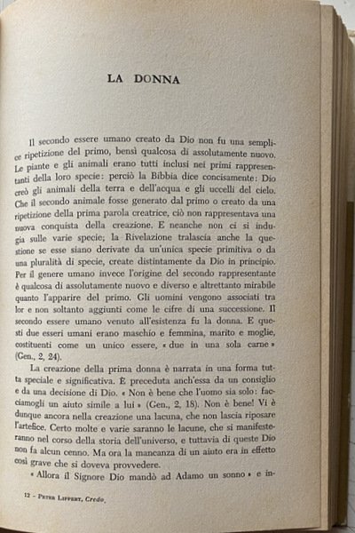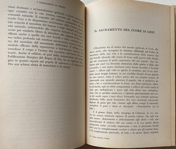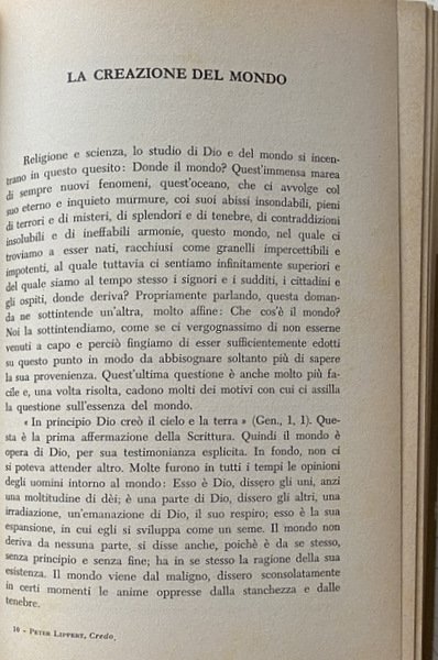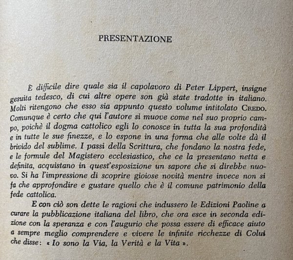 È difficile dire quale sia il capolavoro di Peter Lippert, insigne gesuita tedesco, di cui altre opere son già state tradotte in italiano. Molti ritengono che esso sia appunto questo volume intitolato CREDO. Comunque è certo che qui l'autore si muove come nel suo proprio campo, poiché il dogma cattolico egli lo conosce in tutta la sua profondità e in tutte le sue finezze, e lo espone in una forma che alle volte dà il brivido del sublime. I passi della Scrittura, che fondano la nostra fede, e le formule del Magistero ecclesiastico, che ce la presentano netta e definita, acquistano in quest'esposizione un sapore che si direbbe nuovo.