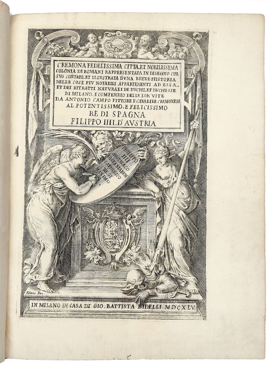 Cremona fedelissima città, et nobilissima colonia de Romani rappresentata in disegno col suo contado, et illustrata d'una breve historia delle cose più notabili appartenenti ad essa, et dei ritratti naturali de duchi, et duchesse di Milano e compendio delle lor vite da Antonio Campo pittore e cavalier cremonese al potentissimo, e felicissimo Re di Spagna Filippo IIII d'Austria