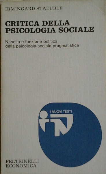 CRITICA DELLA PSICOLOGIA SOCIALE. Nascita e funzione politica della psicologia sociale pragmatistica. Traduzione di Magrini Maria.