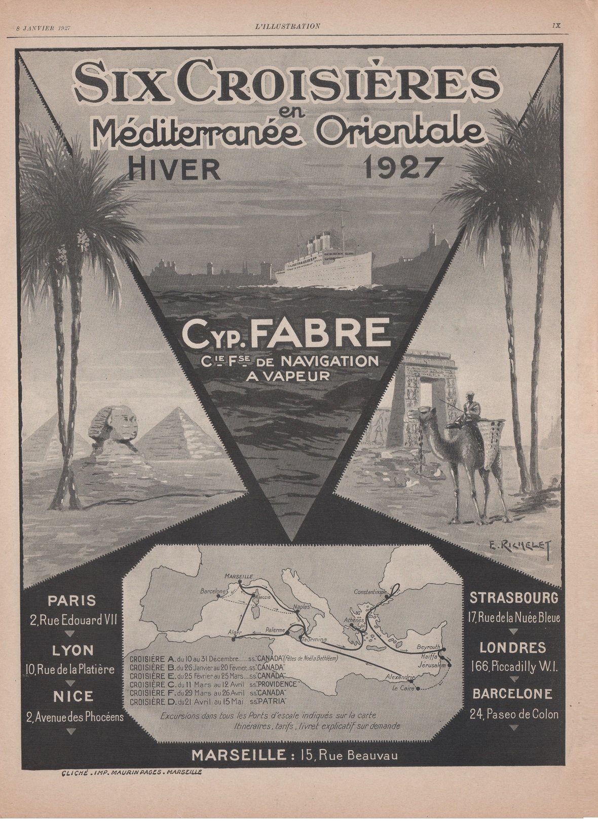 Croisieres Cyp. Fabre, C.ie F.se de Navigation / Bisquits LU. Advertising 1926