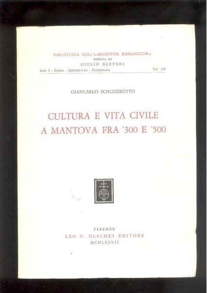 IN 8°, pp.145. COPERTINA EDITORIALE CON TITOLO IN ROSSO E LOGO DI OLSCHKI. <BR>NOVE ILLUSTRAZIONI in b/n.f. INTERESSANTE STUDIO BIBLIOGRAFICO SU MANTOVA E PETRARCA. OPERA FACENTE PARTE DELLA BIBLIOTECA DELL'ARCHIVIUM ROMANICUM FONDATA DA GIULIO BERTONI - SERIEI - VOL. 139. OTTIMA CONSERVAZIONE. ID, 6977