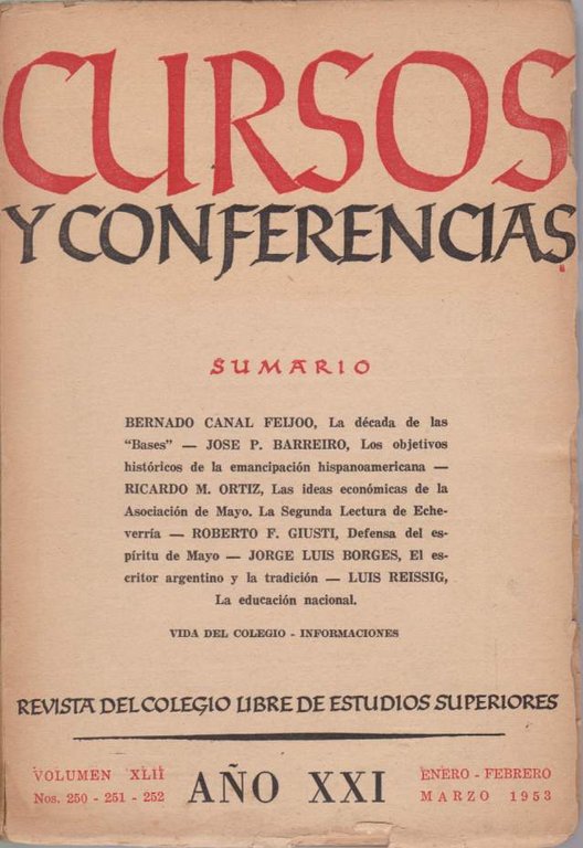 CURSOS Y CONFERENCIAS, VOLUMEN XLII, ANO XXI, ENERO - FEBRERO - MARZO 1953 Revista Del Cloegio Libre De Estudios Superiores