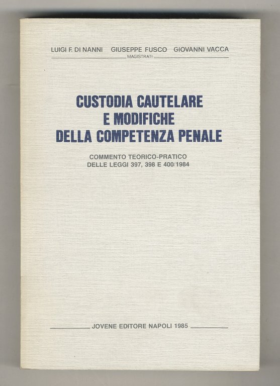 Custodia cautelare e modifiche della competenza penale. Commento teorico-pratico delle leggi 397, 398 e 400/1984
