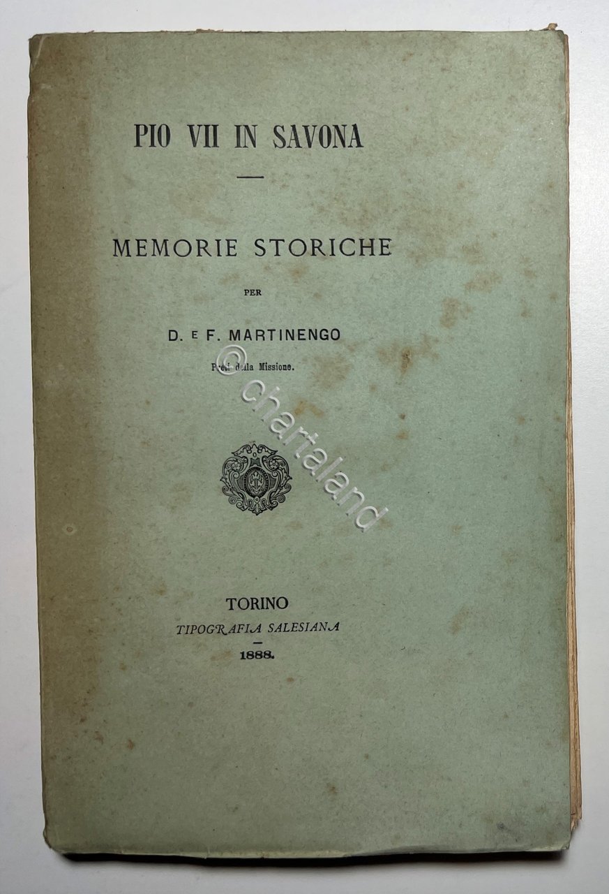 D. Martinengo, F. Martinengo - Pio VII in Savona: Memorie Storiche - ed. 1888 Testo in lingua italiana. Pagine 423 Copertina morbida. Condizioni buone come da foto.