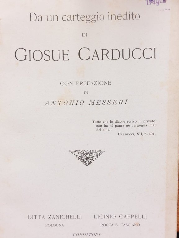 Da un carteggio inedito di Giosuè Carducci con prefazione di Antonio Messeri.
