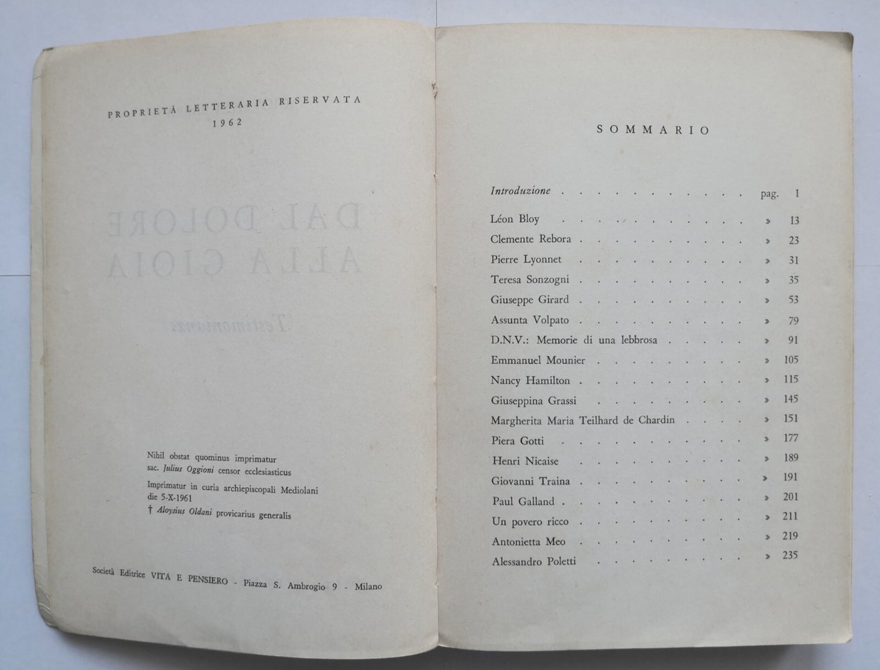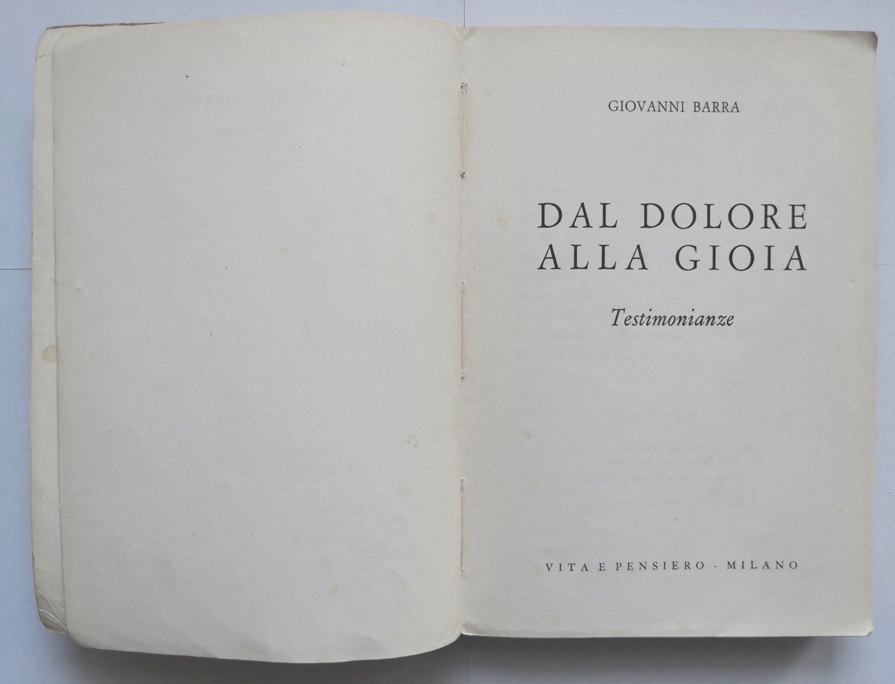 DAL DOLORE ALLA GIOIA testimonianze di Giovanni Barra 1962 Vita e Pensiero Libro