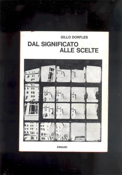 IN 8°, pp.245. LEGATURA EDITORIALE TELATA RIGIDA CON TITOLO AL DORSO + SOVRACOPERTINA ILLUSTRATA CON TITOLO. 44 ILLUSTRAZIONI in b/n.f.t. IL VOLUME, IL QUINTO PUBBLICATO DA EINAUDI NEI SAGGI DI DORFLES, PROSEGUE L'INDAGINE ANTROPO-<BR>SOCIOLOGICA INTRAPRESA NEI NUOVI RITI, NUOVI MITI E IN ARTIFICIO E NATURA., METTENDO A FUOCO ALCUNI PROBLEMI RIGUARDANTI IL PERCHE' DELLE SCELTE, OSSIA DELLE PREFERENZE CHE SPINGONO L'UOMO VERSO L'UNA O L'ALTRA DIREZIONE ALLA RICERCA D'UN EQUILIBRIO SEMPRE TENTATO MA MAI RAGGIUNTO. OPERA FACENTE PARTE DELLA COLLANA SAGGI, 517. OTTIMA CONSERVAZIONE. ID, 6411.
