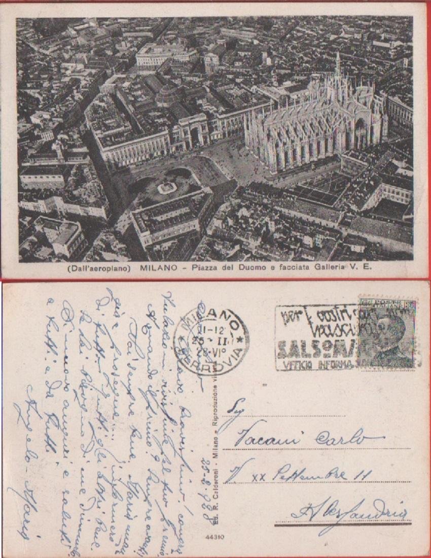 (Dall'aeroplano). Milano. Piazza del Duomo e facciata galleria V.E. Viaggiata 1928
