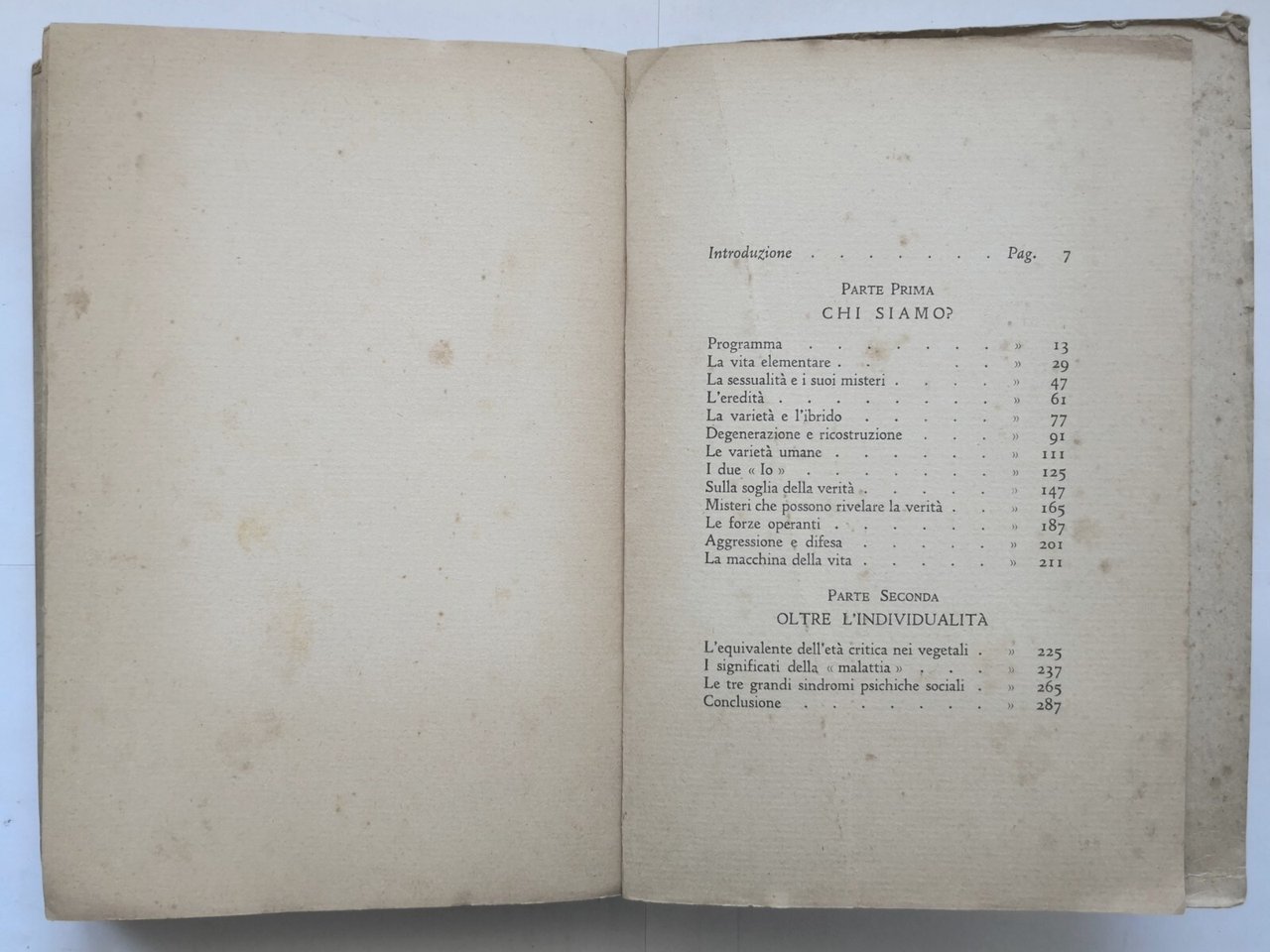 Edizioni Corbaccio, 1938. 291 pagine, figure in bianco e nero fuori testo. Copertina editoriale in cartone rigido. Stato di conservazione: buono (pagine normalmente ingiallite, copertina un po' sciupata, residuo odore di umido) Libro usato saggistica scienza biologia
