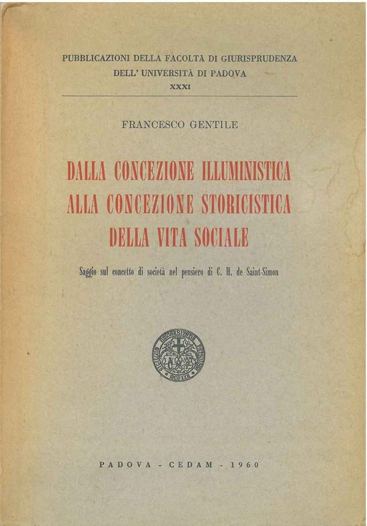 Dalla concezione illuministica alla concezione storicistica della vita sociale. Saggio sul concetto di società nel pensiero di C. H. de Saint-Simon