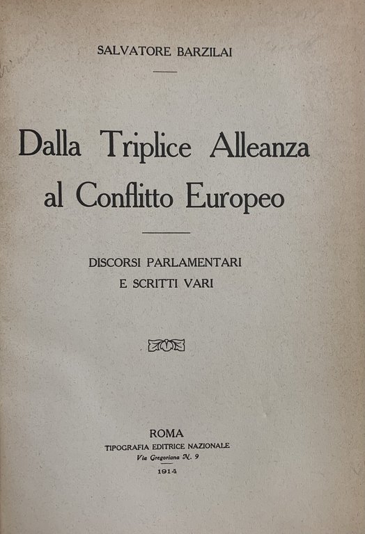 DALLA TRIPLICE ALLEANZA AL CONFLITTO EUROPEO. DISCORSI PARLAMENTARI E SCRITTI VARI
