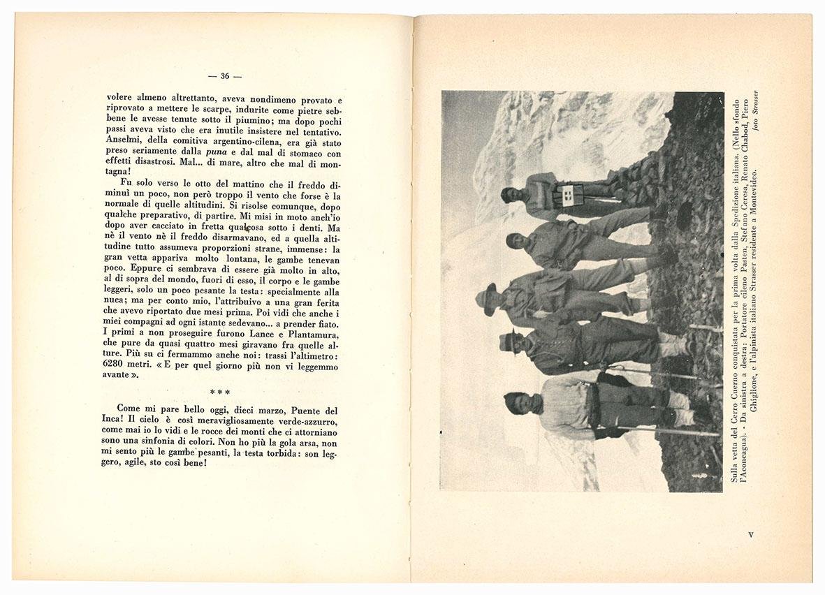 In 8vo (mm 240x160), pp. XVI, [1] c. di tav., 287, [1], XCVI c. di tav. fuori testo. Tavola a colori protetta da velina realizzata da André Roch, raffigurante il Ghiacciaio di Vigne e novantasei illustrazioni fotografiche in bianco e nero. Sette schizzi di cartine e schemi di scalate, uno a doppia e gli altri piena pagina, nel testo. Lieve alone al margine esterno delle pp. 243-244 e 245-246. Cartonato editoriale marmorizzato con titolo al piatto anteriore. Sovracoperta in carta con titolo al dorso, leggermente consunta ai margini.Una delle opere meno comuni del grande alpinista di origine novarese Piero Ghiglione (1883-1960), pioniere dello sci alpino, qui nell'edizione speciale di soli 500 esemplari numerati (n. 45), che in precedenza aveva pubblicato prevalentemente manuali.