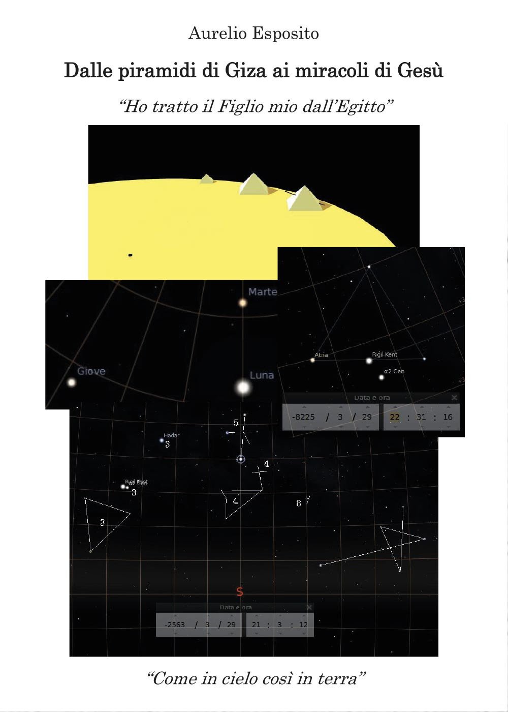 È un saggio che in tre tappe percorre un itinerario alla ricerca dei possibili legami tra scienza e religione per arrivare ad un quadro di compatibilità tra l’ordine del creato e le rivelazioni divine secondo uno schema allegorico. Il metodo d’indagine è quello di ricercare proporzioni, geometrie e numeri simbolici coincidenti con quelli relativi a nozioni scientifiche fondamentali. L’idea è quella di risalire da scelte architettoniche e da racconti in stile divulgativo a schemi di verità universali. La chiave per decifrare il messaggio “criptato” è costituita dal preciso quadro numerico. Il legame tra cielo e terra è ricercato nei riferimenti astronomici interpretati come depositari dello schema del disegno divino per celebrare i numeri della creazione attraverso la scelta dei tempi dei moti celesti; la celebrazione si rispecchia nella storia umana tramite i calendari basati su quei moti. La numerologia tradizionale riferita alla pesca miracolosa viene completata attraverso l’analisi dei legami con i numeri simbolici della piramide di Cheope per arrivare ad interpretare le immagini astronomiche del cielo come ispiratrici degli schemi delle piramidi e dello scenario del calvario.