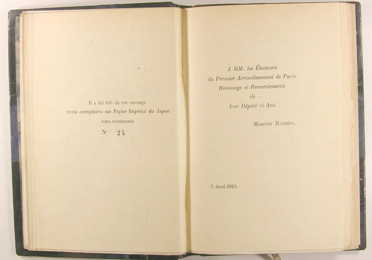 Paris Emile-Paul Frères, éditeur, 1914, in/8, 115 pages, le dos et les couvertures conservées, reliure demi-maroquin, dos à nerfs, coins, 414 pages + table des matières. Tirage 30 exemplaires sur papier impérial du Japon, N° 24.