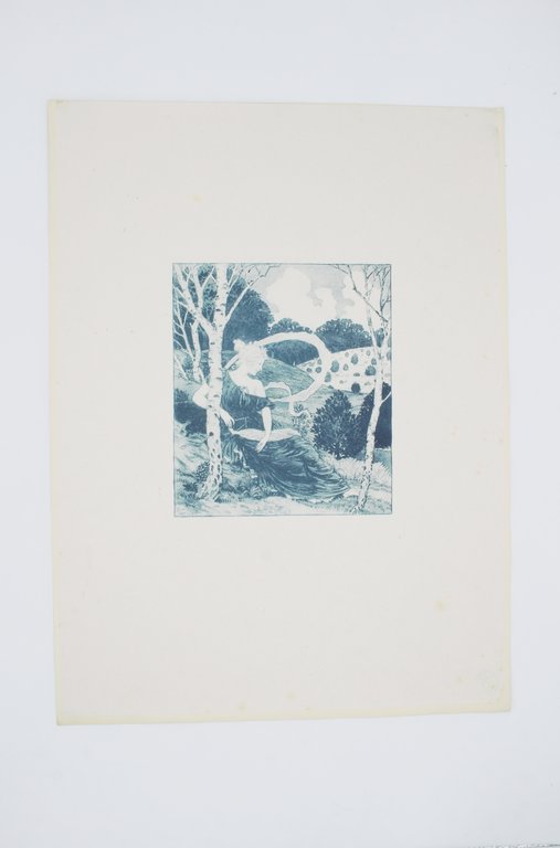 Imprimerie Champenois • pour CH. Masson • H. Piazza | Paris (Mars 1899) | 19.50 x 22 cm | une feuille | [ENGLISH DESCRIPTION ON DEMAND] | Rare lithographie originale, exécutée par Eugène Grasset pour L'Estampe Moderne, série numéro 23 publiée en mars 1899. Une des 50 épreuves de grand luxe tirées sur Chine à grandes marges, imprimée à l'encre bleue, signature de l'artiste dans la planche, timbre à sec de l'éditeur représentant un profil d'enfant en marge inférieure, contrecollée sur un feuillet de papier vélin avec au dos le tampon numéroté du tirage de luxe, quelques rousseurs. Lithographie inspirée d'un poème, Les tendresses, d'Armand Sylvestre. Magnifique publication mensuelle française éditée entre mai 1897 et avril 1899, L'Estampe moderne se constitue de chromolithographies inédites qui, contrairement à d'autres revues comme Les Maîtres de l'Affiche et tel qu'il est stipulé sur les serpentes, ont été réalisées spécialement par chaque artiste pour la revue. Ce sont ainsi 100 estampes qui paraissent au total, couvrant les courants artistiques majeurs de la fin du XIXème siècle : Symbolisme, Art Nouveau, Préraphaélites, Orientalistes et Belle Epoque. Chaque livraison de quatre estampes est tirée à 2000 exemplaires vendus 3,50F et 100 sur papier Japon proposés à 10F. Henri Piazza prévoit également un tirage confidentiel de très grand luxe : 50 exemplaires sur Japon à grandes marges et 50 en noir sur Chine au prix considérable de 30F. Cette estampe d'un beau format est superbement imprimée sur l'un des plus prestigieux papiers : le Chine. « Malgré toutes ses qualités, le papier de Chine, trop inconsistant, doit sa réputation, non pas à sa propre beauté, mais bien à ses affinités particulières avec l'encre d'impression. Son tissu, lisse et mou tout ensemble, est plus apte qu'aucun autre à recevoir un beau tirage. Cette propriété fait rechercher le papier de Chine pour le tirage des gravures. » (Anatole France). L'intérêt des collectionneurs français pour les affiches artistiques s'amplifie au début des années 1890. Octave Uzanne, pour qualifier cette fièvre invente le terme d'« affichomanie ». L'affiche, à l'origine populaire et placardée dans les rues de la capitale, devient alors objet d'art et son support éphémère se fait précieux et voué à la conservation. Piazza décide de soustraire l'affiche à sa vocation publicitaire et de l'élever au rang d'œuvre d'art à part entière au même titre que le livre illustré de luxe. Il compose ainsi une collection prestigieuse d'œuvres entièrement originales, par les artistes européens les plus en vue du moment : Georges de Feure, Eugène Grasset, Henri Detouche, Emile Berchmans, Louis Rhead, Gaston de Latenay, Lucien Lévy-Dhurmer, Gustave-Max Stevens, Charles Doudelet, Hans Christiansen, Henri Fantin-Latour, Steinlen, Ibels, Engels, Willette, Henri Meunier, Evenepoël, Bellery-Desfontaines, Charles Léandre, etc. Bel exemplaire dans le style Art Nouveau.
