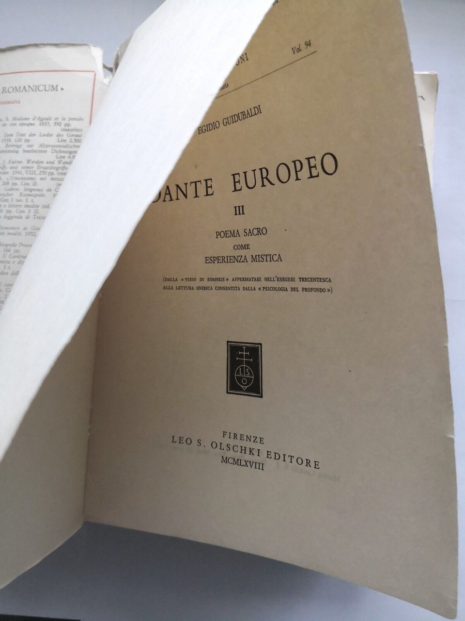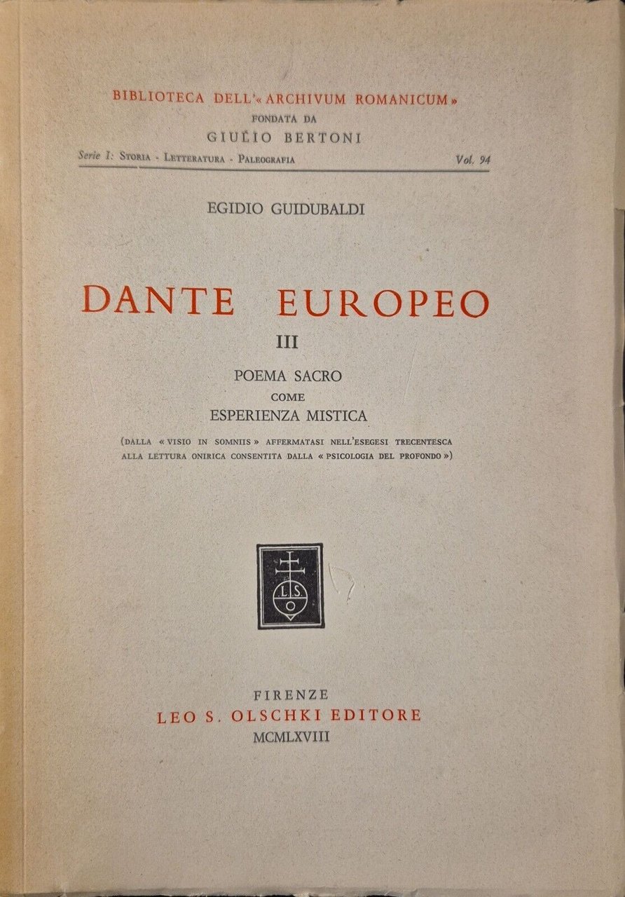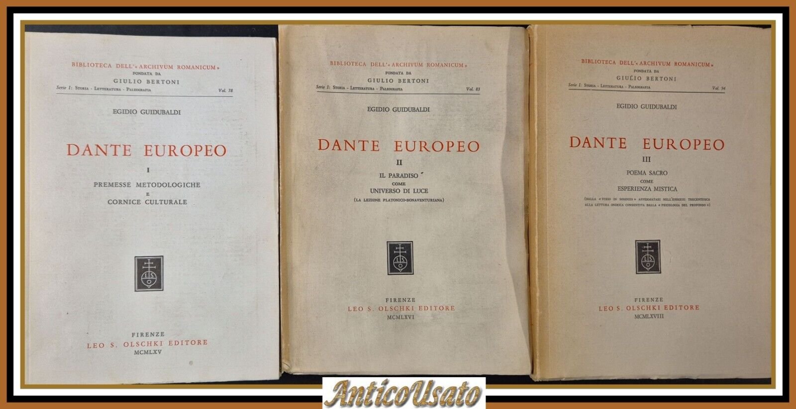 DANTE EUROPEO di Egidio Guidubaldi 3 volumi 1965 Olschki libro Alluvione Firenze