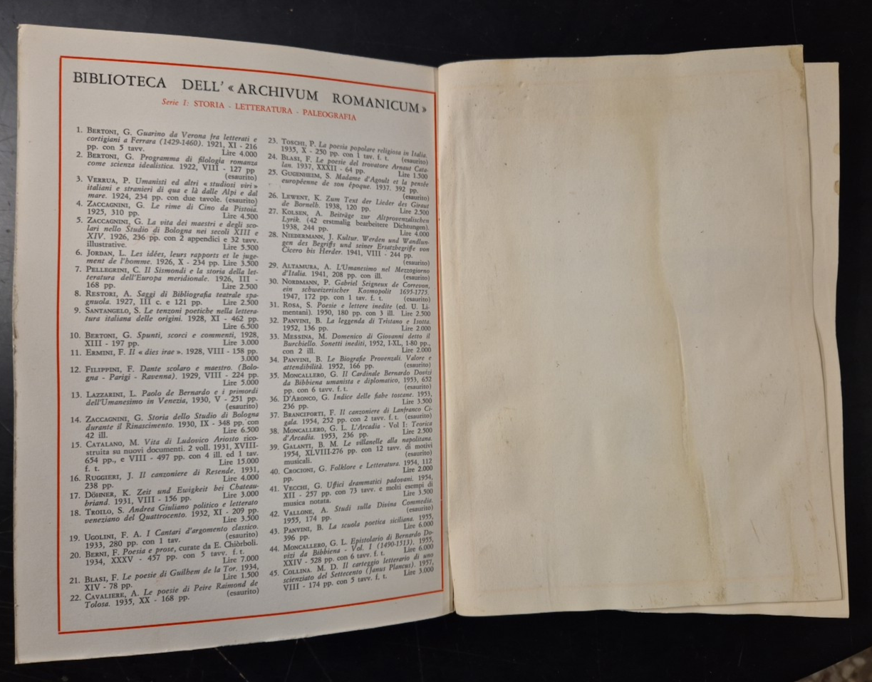Editore Leo S. Olschki, 1968. Collana "Biblioteca dell'"Archivum Romanicum"" volumi 78, 83 e 94.