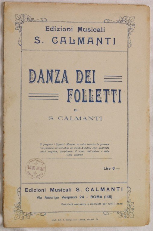 In 8. cm 27x18. pp 13. partitura completa per orchestra senza data ma degli anni'30 di una canzone.<BR>Caratteristica copertina illustrata d'epoca. ex libris in copertina. In buone condizioni, usure al dorso e fioriture. a complete score for orchestra of 1930's.<BR>Carachteristic decorated cover of that period. ex libris in the cover. In good conditions; worn spine and foxings