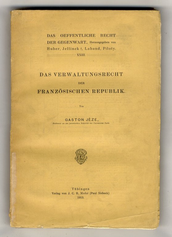 Tübingen, Verlag von J.C.B. Mohr (Paul Siebeck), 1913, in-4, brossura editoriale, pp. XVI, 528. Minima mancanza al dorso: buon esemplare.