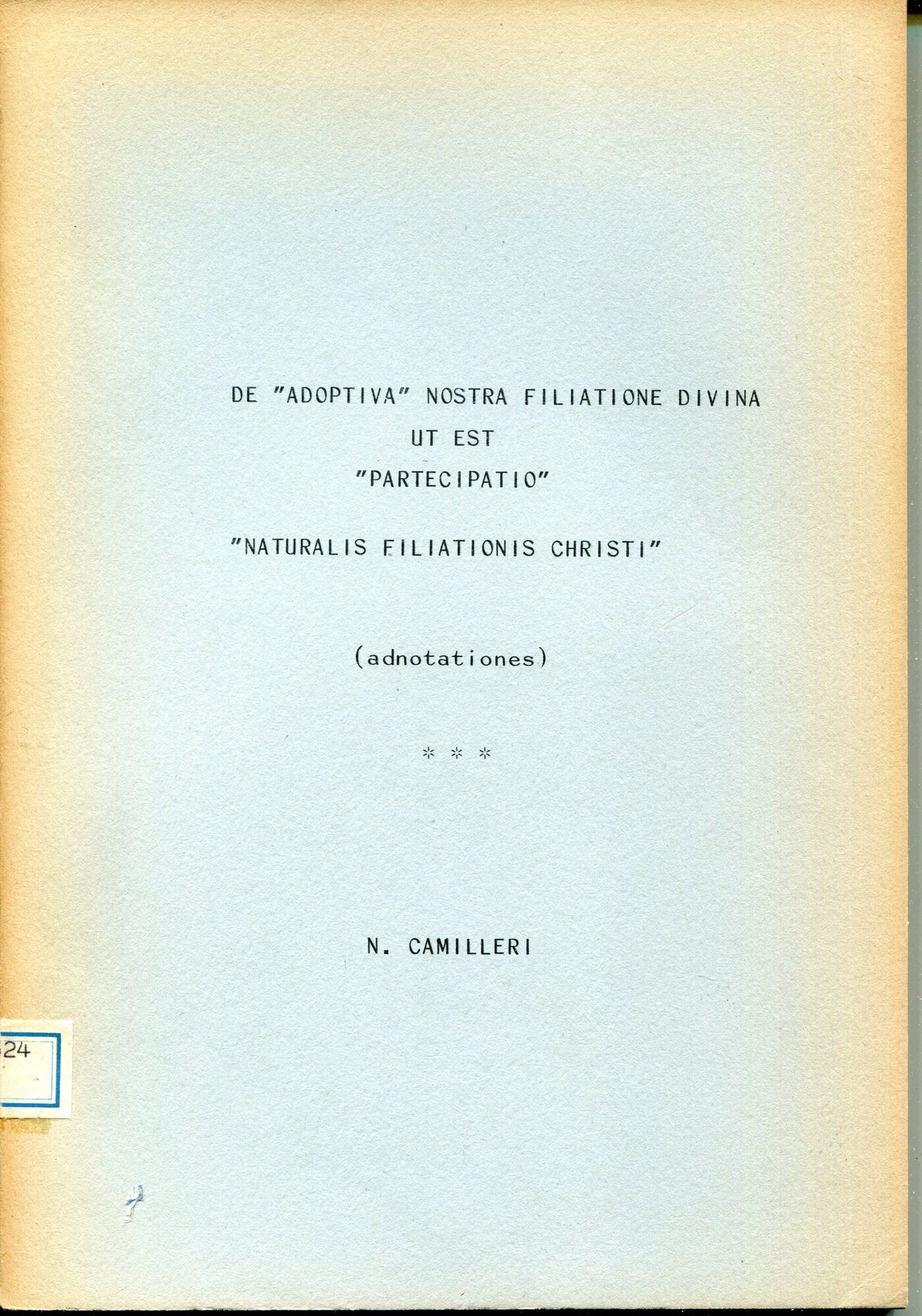 De "adoptiva" nostra filiazione divina ut est "partecipato" Naturalis Filiationis Christi (adnotationes) | Libri antichi e moderni | Camilleri N., ,Camilleri N.
