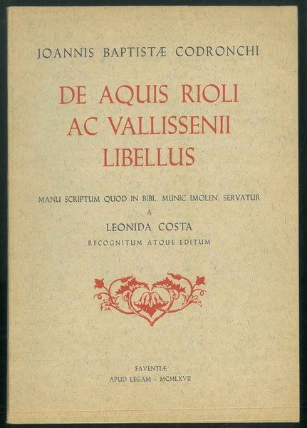 De Aquis Rioli Ac Vallissenii Libellus. Manu scriptum quod in bibl. munic. imolen. servatur. A Leonida Costa recognitum atque Editum.