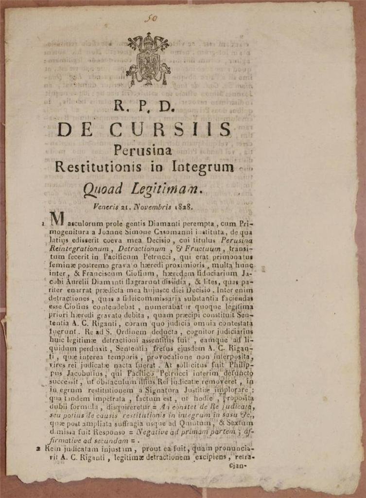 DE CURSIIS PERUSINA RESTITUTIONIS IN INTEGRUM QUOAD LEGITIMAM VENERIS 21 NOVEMBRIS 1828