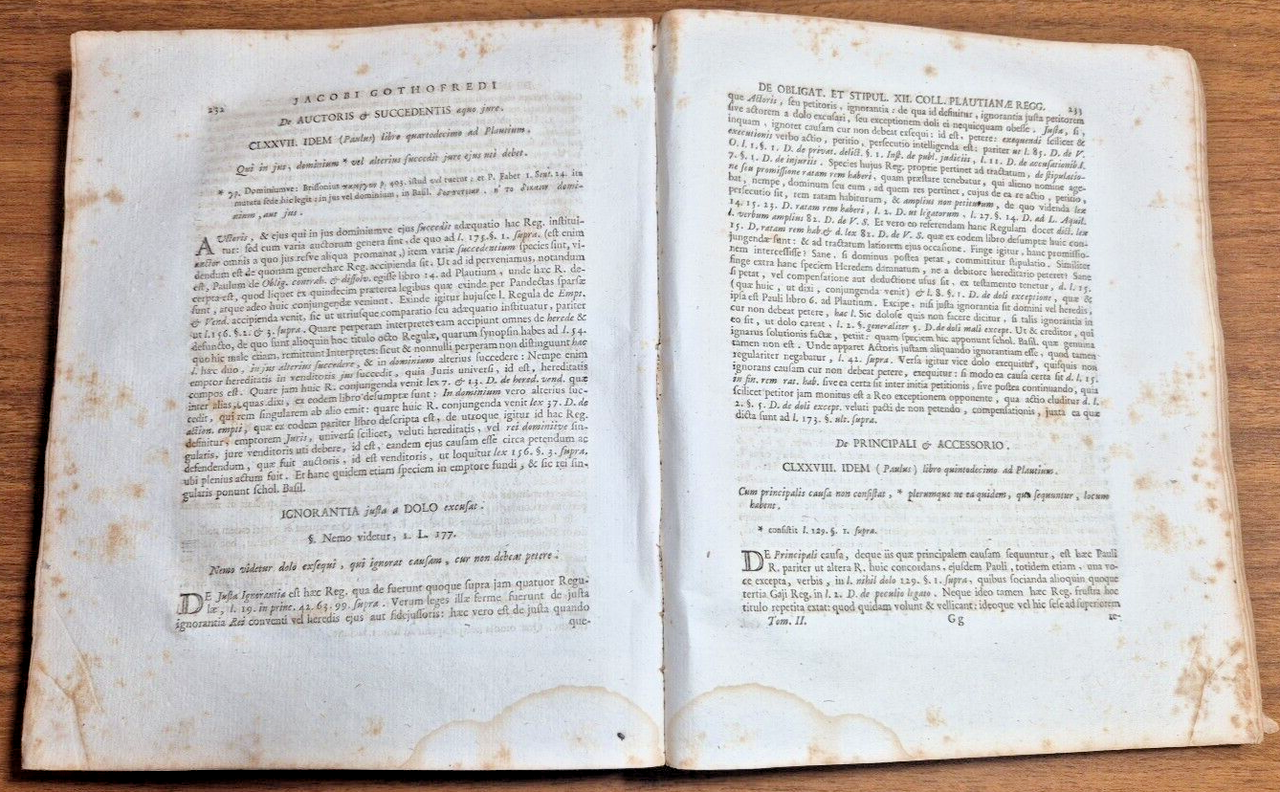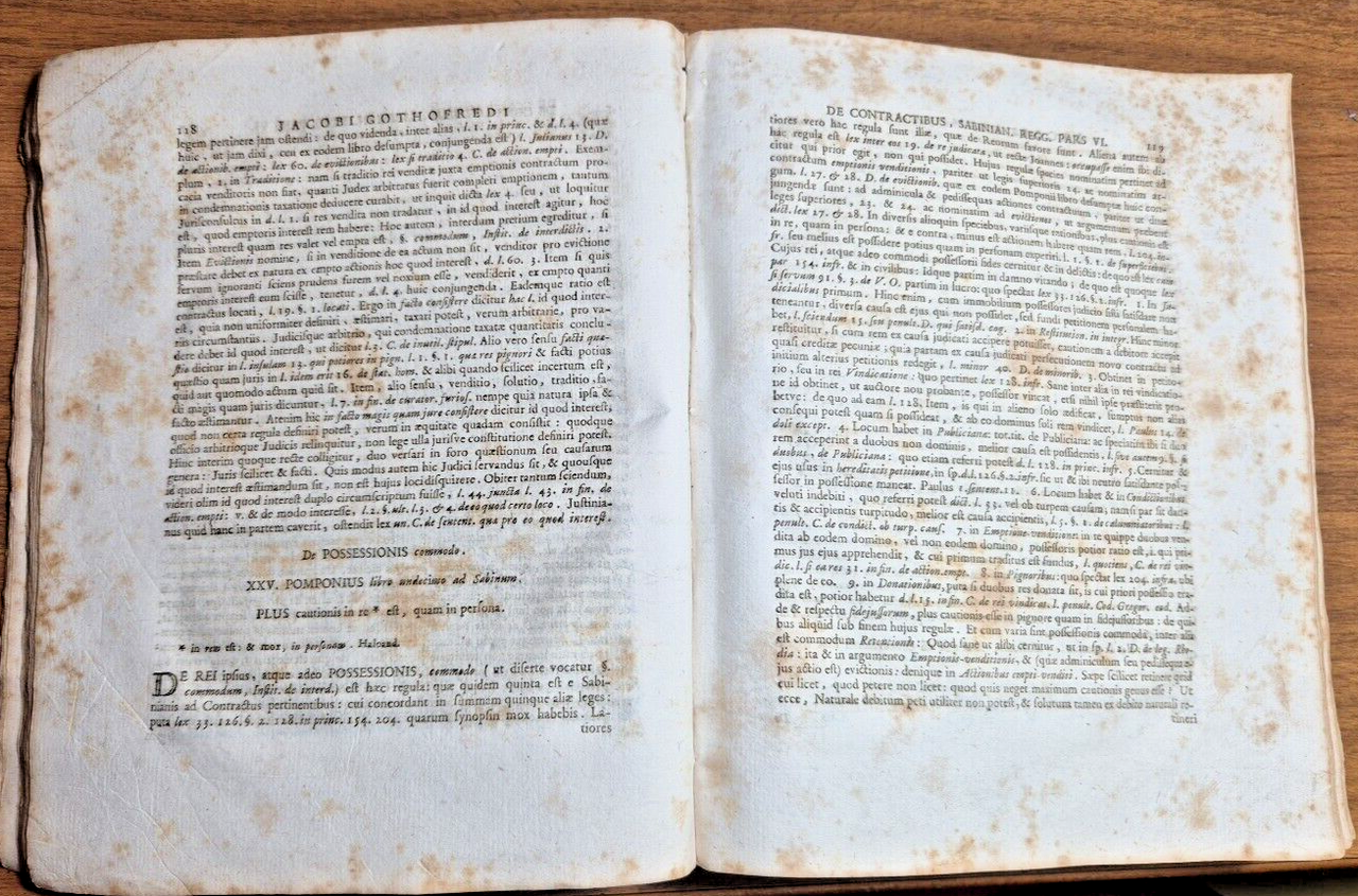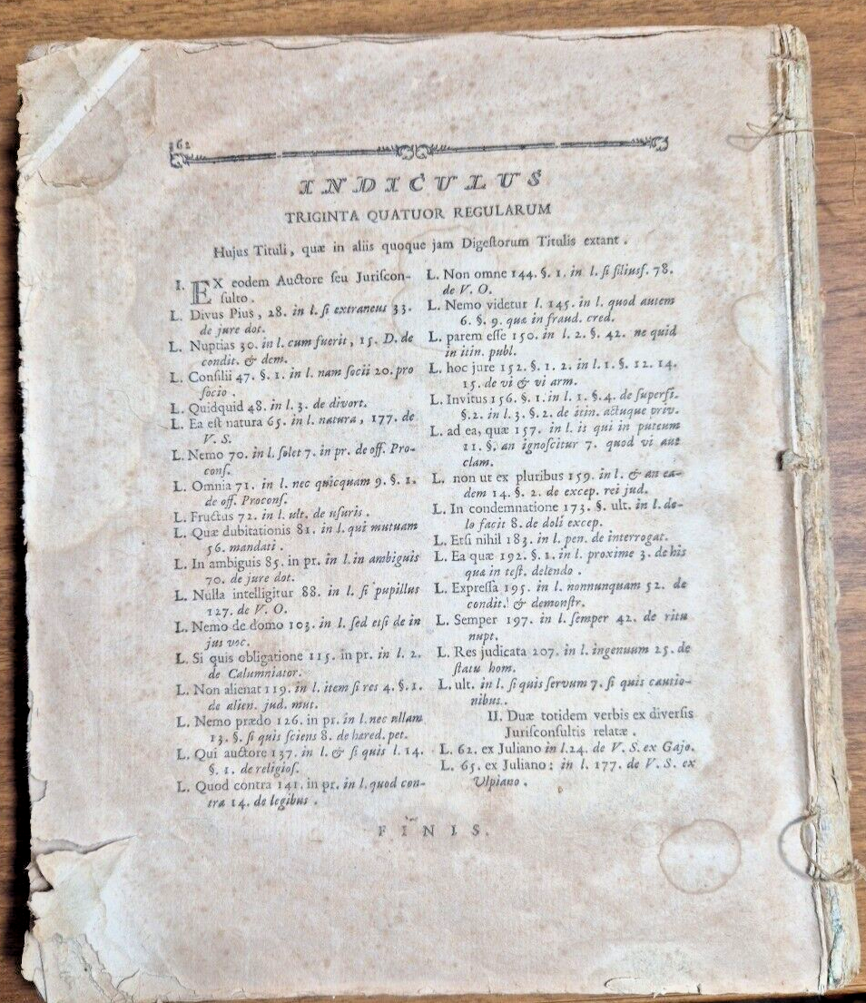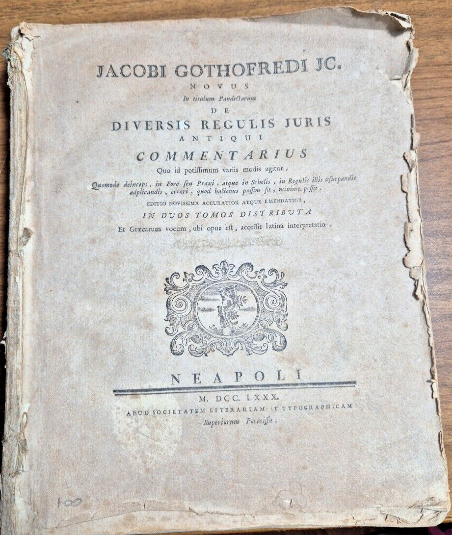 DE DIVERSIS REGULIS JURIS ANTIQUI di Jacobi Gothofredi 1780 Libro mancano pagine