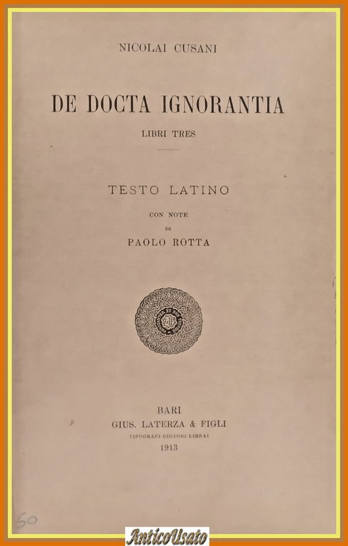DE DOCTA IGNORANTIA di Nicolai Cusani 1913 Laterza Libro Cusano testo in Latino