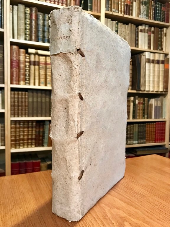 In-folio (cm. 31,5), legatura coeva in cartonato d'attesa con titolo anticamente ms. su etichetta al dorso; pp. [12] 510 [2] in barbe, ultima carta bianca, frontespizio rosso e nero con antica firma di appartenenza, testo su due colonne; sporadiche macchioline, frontespizio leggermente brunito. Opera principale del dotto legale ferrarese dedicata a Sigismondo Chigi, nipote di Papa Alessandro VII. Esemplare molto buono.