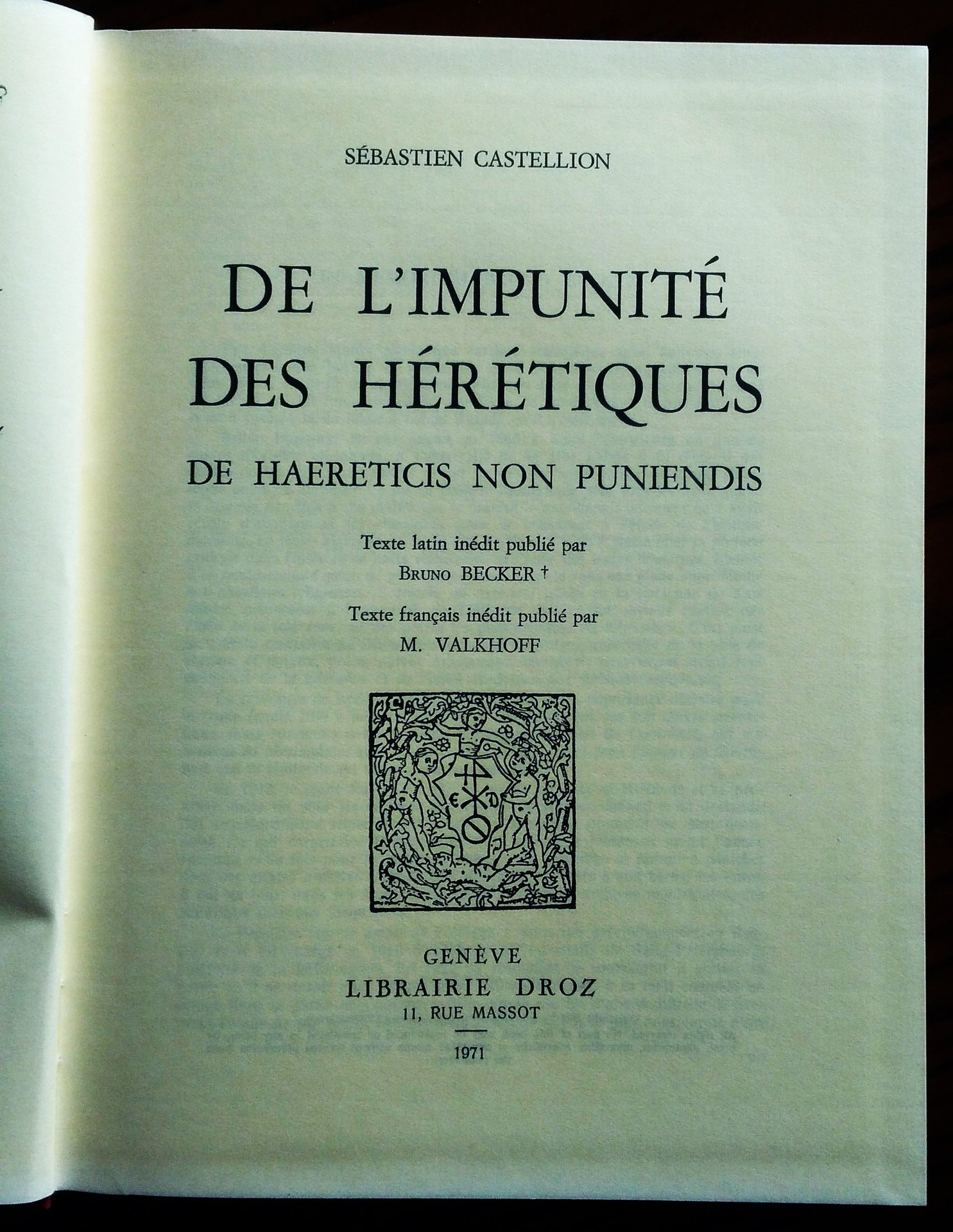 De l'impunité des hérétiques. De haereticis non puniendis. Texte latin inédit publié par Bruno Becker. Texte français inédit publié par M. Valkhoff.