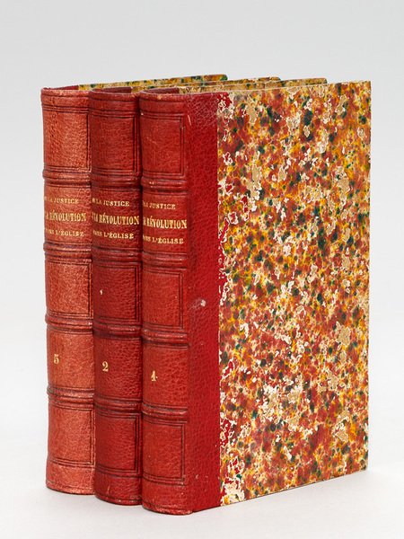 E.O., Adressés à Son Eminence Mgr. Mathieu, 3 vol. in-12 relié demi-chagrin rouge, dos à 4 nerfs, Librairie de Garnier Frères, Paris, 1858, 520, 544, 612 pp. Complet. Etat très satisfaisant (fortes rouss., petits mq. aux papiers des plats, petit travail marginal d'insecte n'affectant pas le texte aux derniers feuillets du tome 3) mais exemplaire d'agréable présentation malgré les défauts signalés.