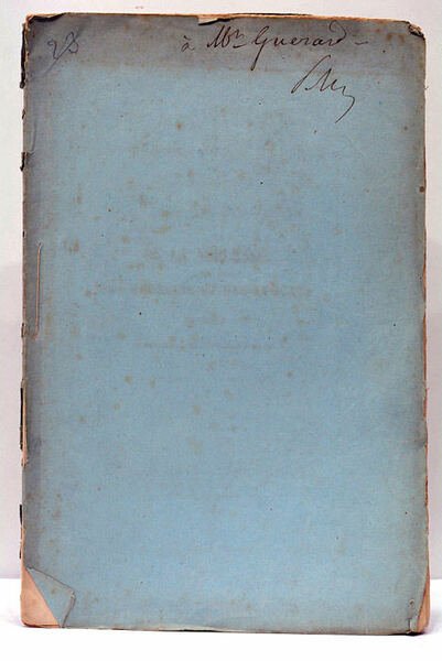 30 pages. 1 feuillet blanc. (24,5x16,5 Cm). Broché. Couverture muette de l'époque. Plis et traces de plis. Rousseurs. Manques au dos. Intèrieur en bon état à part quelques taches et le papier bruni. Correspondance entre Menière, médecin de l'Institution impèriale des Sourds-Muets de Paris, et Brouchoud, Docteur en droit, avocat à la cour impèriale de Lyon, au sujet du titre de 'nobles' donné aux médecins et aux avocats.