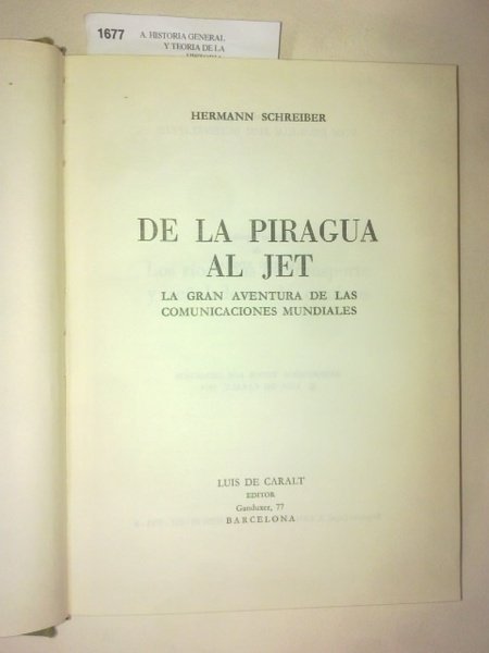 SCHREIBER, Hermann De la piragua al jet. La gran aventura de las comunicaciones mundiales Caralt. Barcelona 1974 367 p. (22 cm) Enc. tela con dorados. A (Ref.1677) historia general navegacion aeronautica ingenieria tecnica medios de transporte