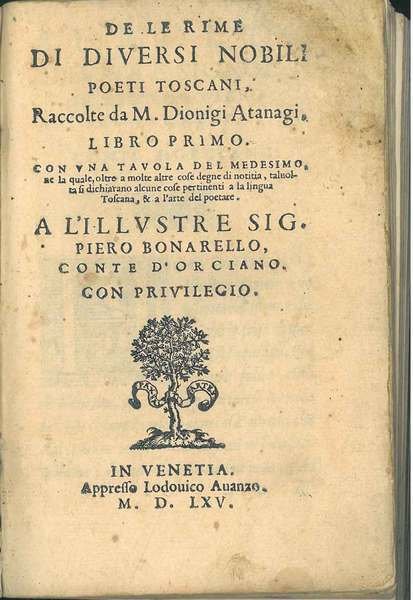 De le rime di diversi nobili poeti toscani, raccolte da M. Dionigi Atanagi, libro primo