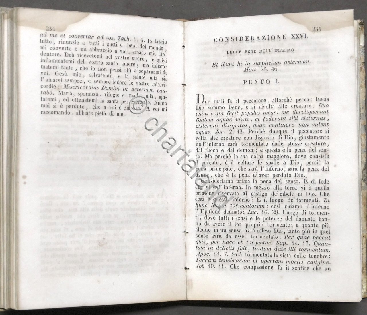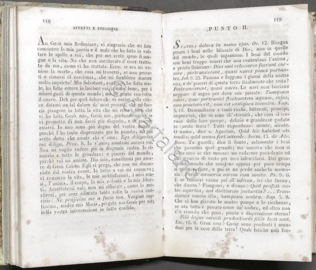 Apparecchio alla morte ossia considerazioni sulle massime eterne utili a tutti per meditare ed a' sacerdoti per predicare. Opera di S. Alfonso de' Liguori - ed. 1842 Pag. 351 Legatura in mezza pelle - Testo in italiano. Buone condizioni. Qualche macchia e tracce di foxing naturale.