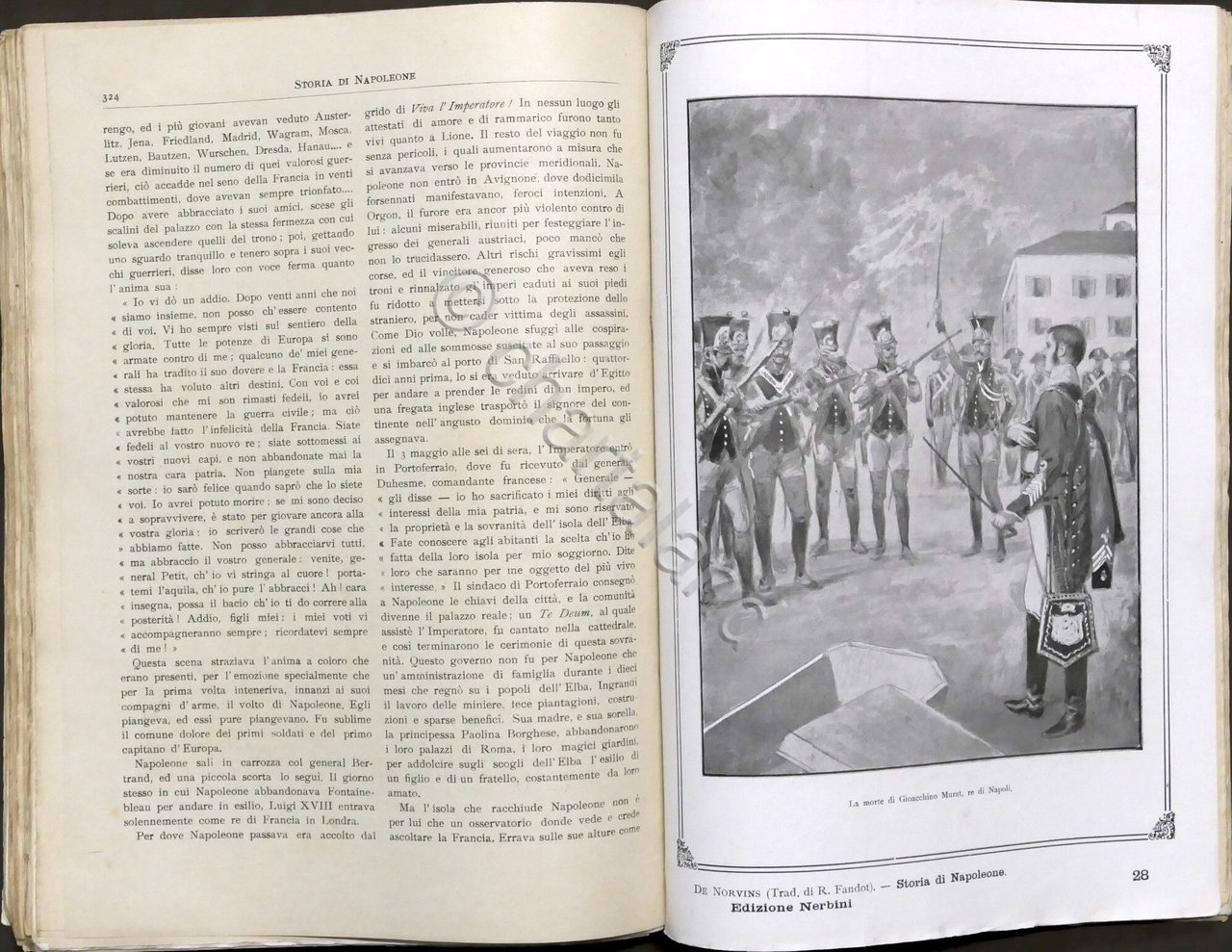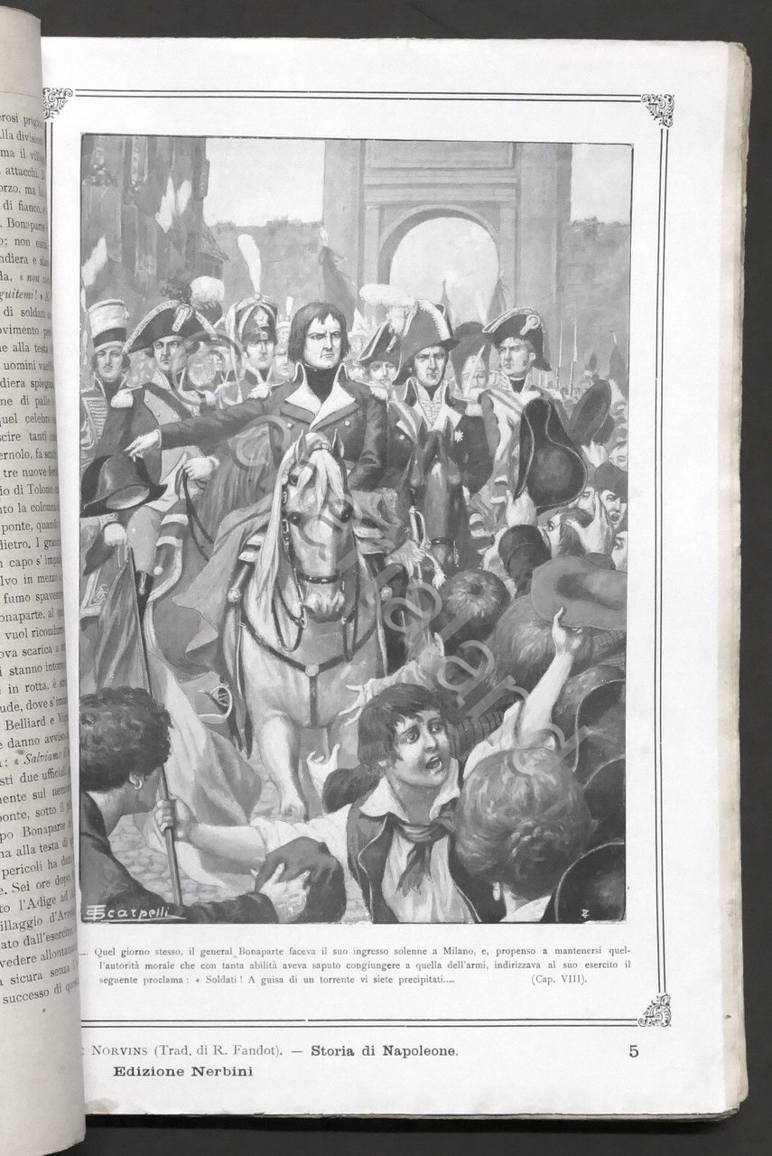 De Norvins - Storia di Napoleone - Nuova traduzione e riduzione italiana di Raoul Fandot ; illustrata da incisioni dell'epoca e da illustrazioni originali di Tancredi Scarpelli - ed. 1913 Nerbini Pag. 375 Copertina morbida - Testo in italiano. Condizioni buone. Copertina con segni di restauro. Dorso rifatto.