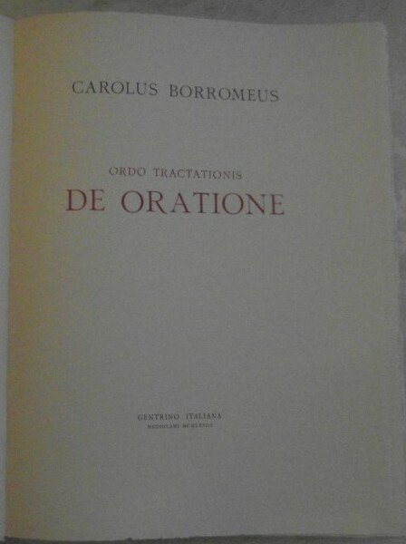 Gentrino Italiana, 1968. In - 4 gr., brossura, sovracoperta, custodia in cartone, pp. XXI,(1),72,(8) e la riproduzione in facsimile del manoscritto inedito "De Oratione", posseduto dalla Biblioteca Ambrosiana. Edizione numerata di 350 esemplari. In ottimo stato