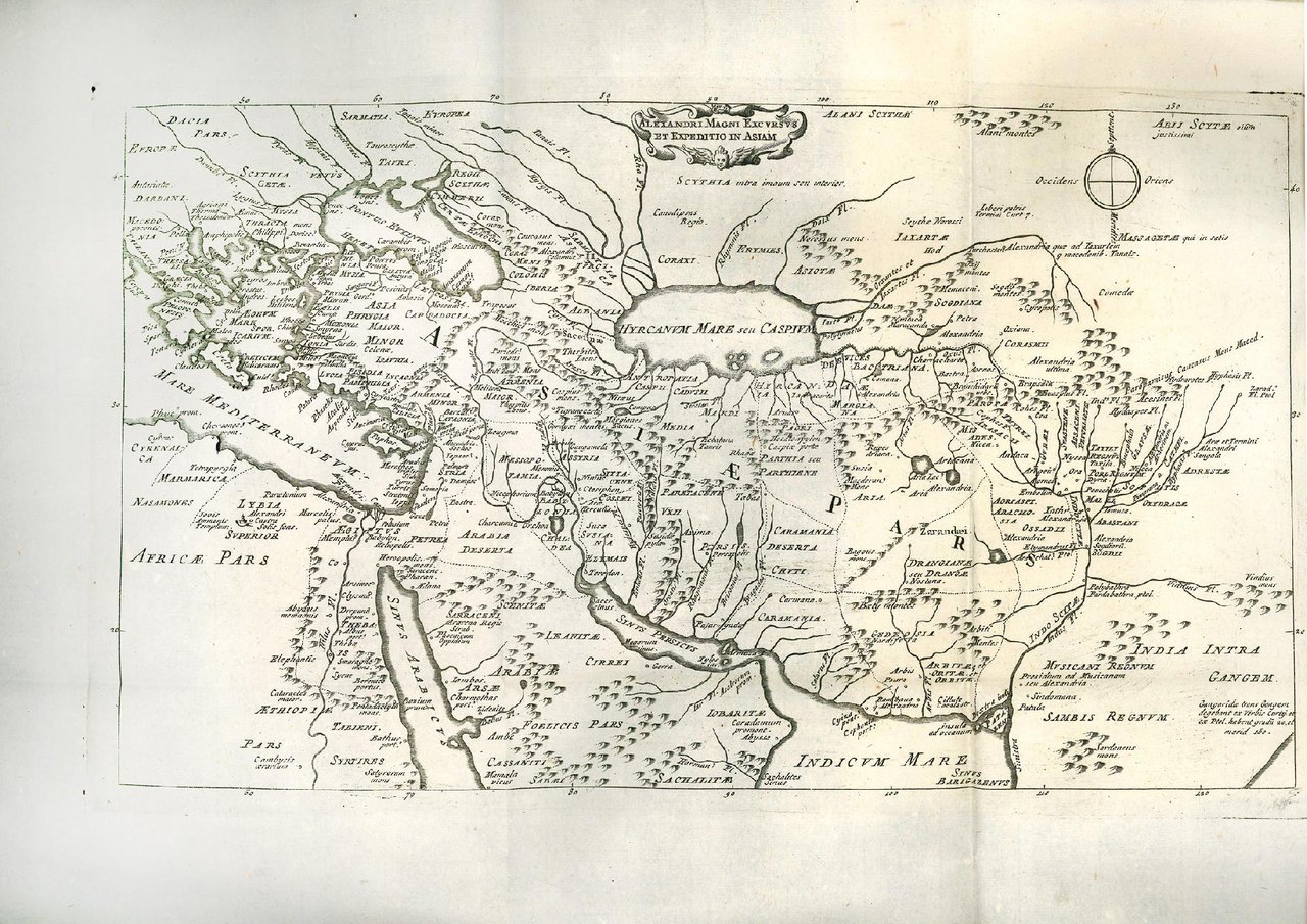 In 4to (mm. 226x191). Pp. XXXI, [1], 510, [2 bianche] ed una carta geografica incisa in rame ripiegata fuori testo raffigurante la spedizione di Alessandro Magno in Asia. Cartonato coevo con nervi passanti e titolo manoscritto al dorso. Bellissima copia intonsa e a fogli chiusi.