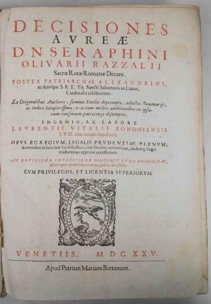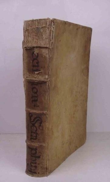 Due parti in un volume di cm. 32, pp. (20) 174 (2) 471 (1); 268. Primo frontespizio in rosso e nero, marchi tipografici e capolettera figurati. Legatura coeva in piena pergamena rigida, dorso a nervi con titoli manoscritti. Mancanze al dorso, peraltro esemplare genuino e ben conservato.