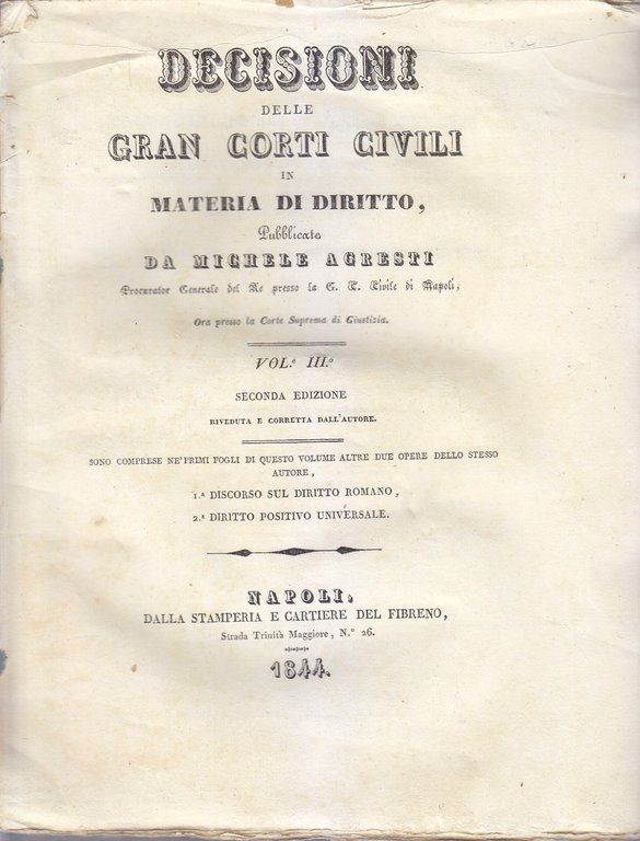 DECISIONI GRAN CORTI CIVILI IN MATERIA DI DIRITTO volume 3 Agresti 1844 libro