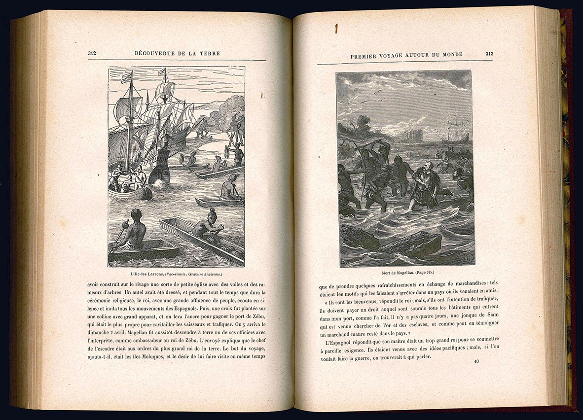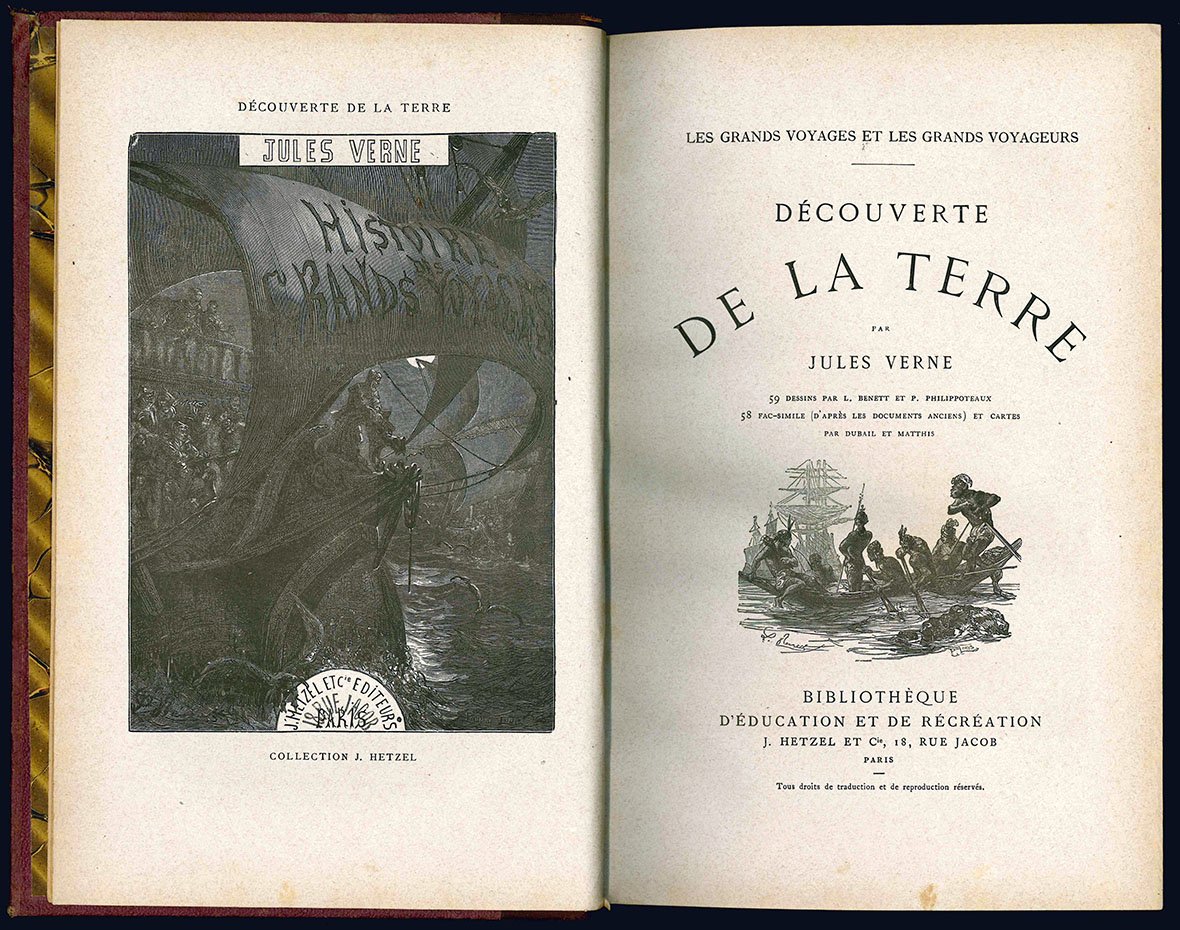 Découverte de la terre par Jules Verne 59 dessins par L. Benett et P. Philipotteaux 58 fac-simile (d'après les documents anciens) et cartes par Dubail et Matthis. Histoire des grans voyages et des grands voyageurs.