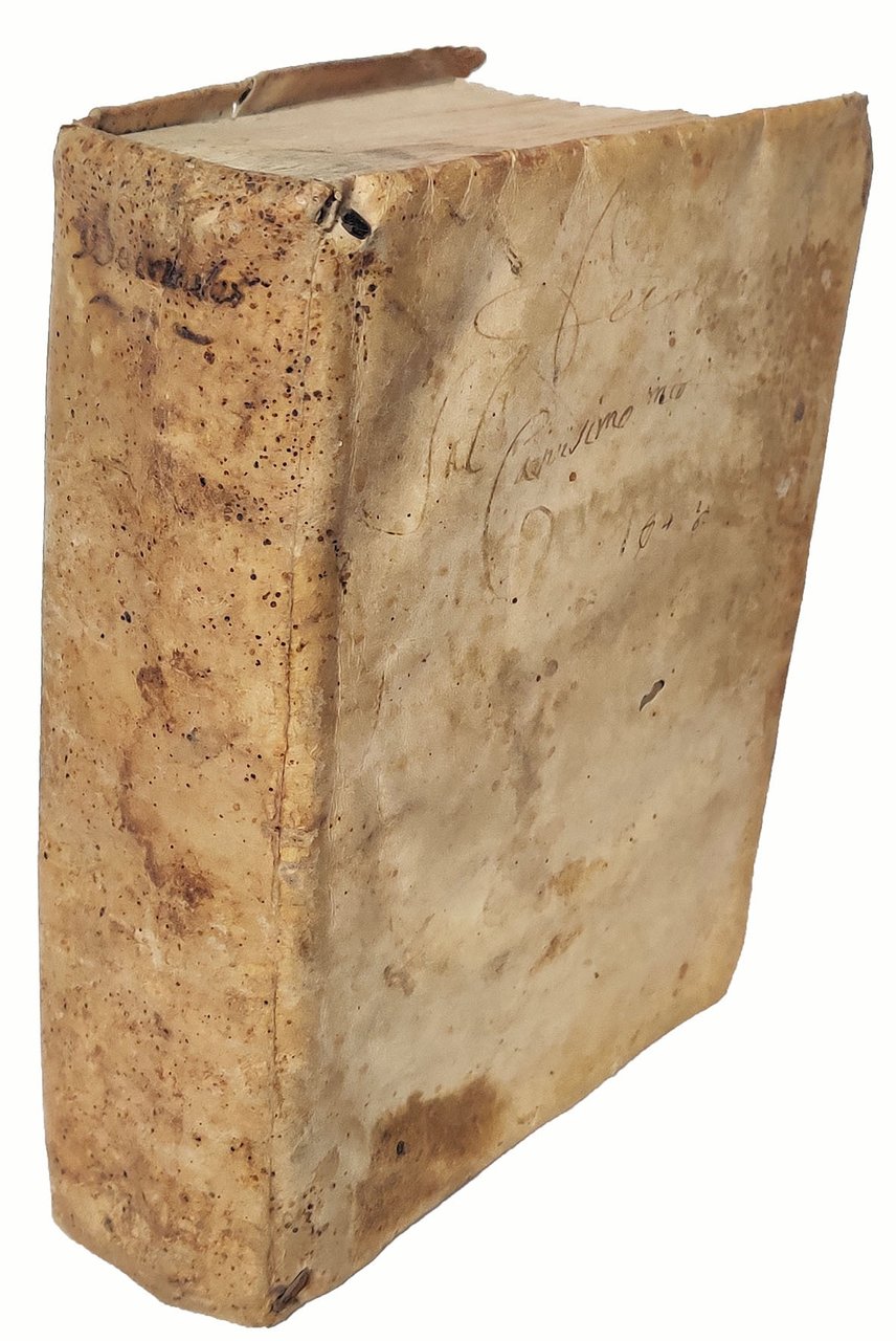4to (206x147 mm). [4], CCCCCXXXVI, [56] ll. Collation: [π4] a-z8 &8 [cum]8 [run]8 aa-zz8 &&8 [2cum]8 [2run]8 aaa-yyy8 (l. yyy8, a blank). Title page printed in red within a woodcut ornamental frame. Woodcut printer's device on title page printed in red. Two full-page woodcut illustrations at ll. CCCCXV verso (‘Arbor consanguinitatis') and CCCCXVI recto (‘Arbor affinitatis'), and a full-page woodcut on l. [π]4v. Text in gothic letter in red and black, chapter headings rubricated, printed side notes, many woodcut initials and in-text illustrations, text in double columns. Colophon at l. CCCCCXXXVI verso, final index in three columns. Contemporary vellum with manuscript title on the spine (binding worn and stained, spine soiled, binding slightly detached from the book block, small worm hole to the front panel). On the title page manuscript entries ‘Ex libris… Jo Domi[nici] Lavign.ra' and, by a later hand, ‘et modo […] Matthias Lo Porrino […]'. Some manuscript annotations and reading signs. Marginal stains, occasionally browned and soiled, worm track to the title page and following two leaves slightly affecting the text. All in all, a good and genuine copy.