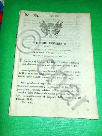 Decreti Regno Sardegna Torino - Tariffe e Regolamenti di Dogana Tabacchi 1853
