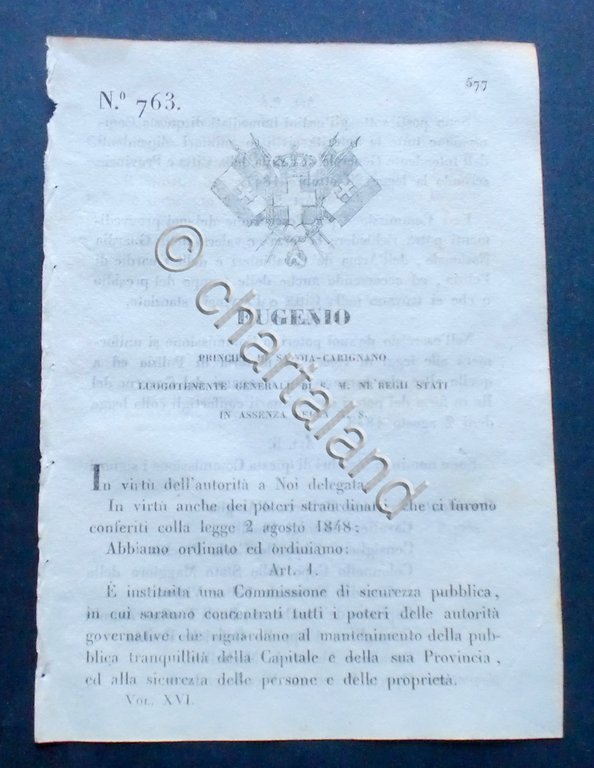 Decreto Eugenio - Instituzione Commissione di sicurezza pubblica - 1848