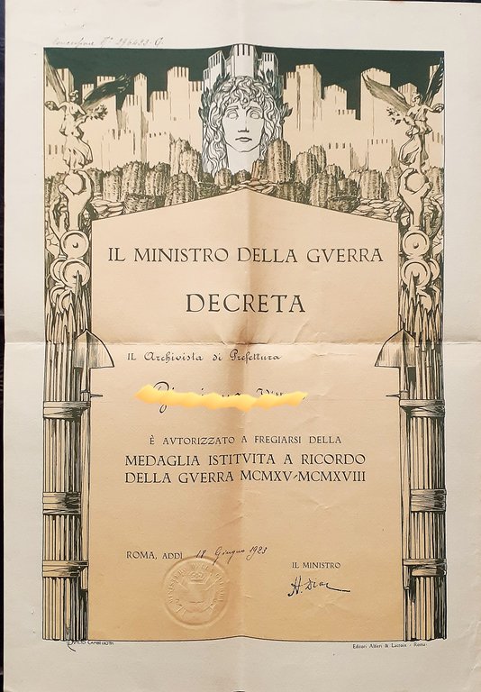 Decreto Ministero della Guerra disegno di Duilio Cambellotti 1923