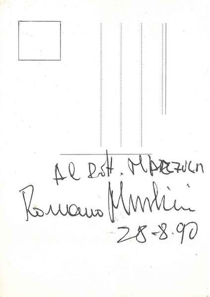 Dedica e firma autografe al verso della cartolina della 9° festa tricolore del MSI